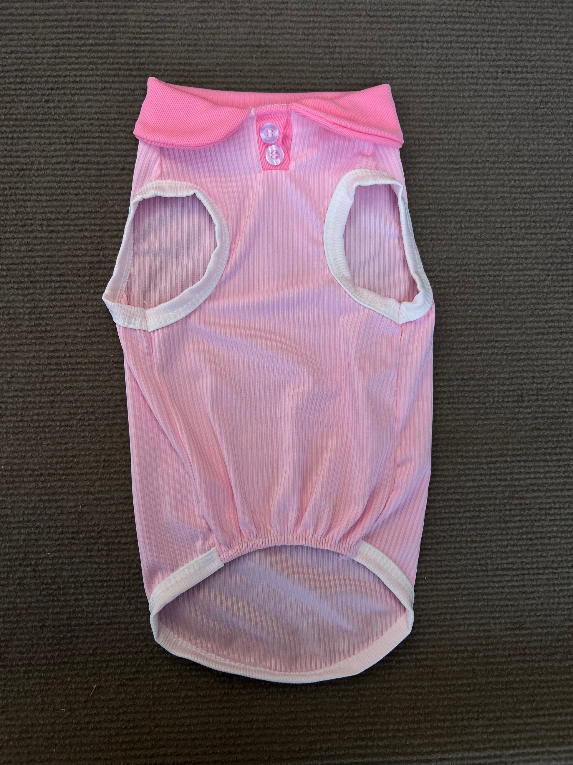 CAMISA SIN MANGAS Y CUELLO ROSADA